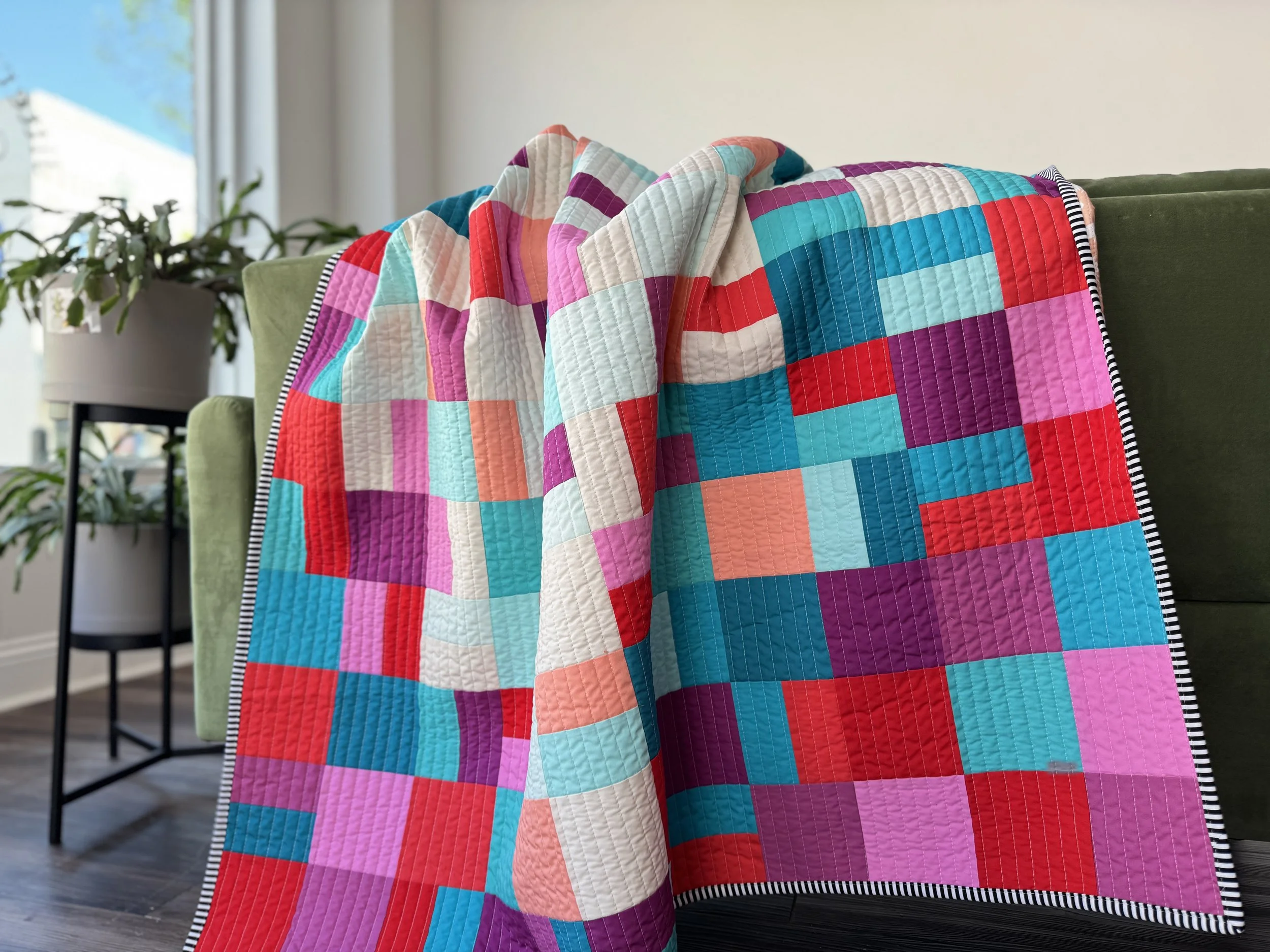 Make a bold, modern baby quilt using just 12 fat quarters.